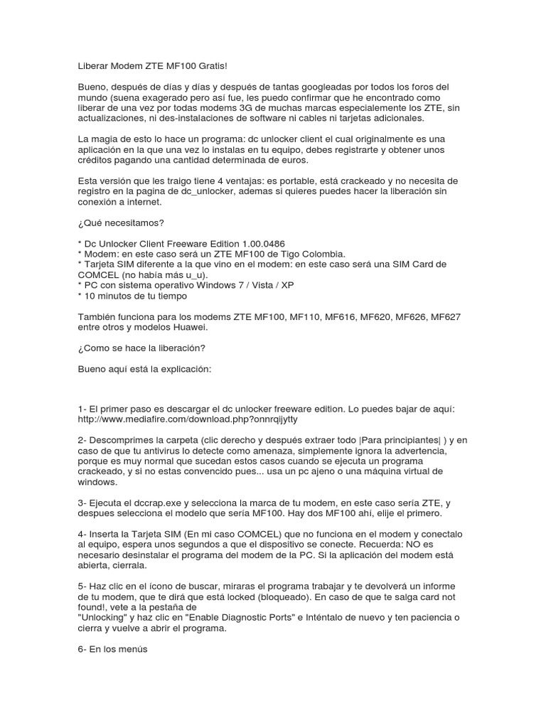 Today, i have with unlocking solutions of zte mf637 3g modem. By using this tool, you can easily unlock all of the models' internal and external modem without any effort and cost. Now disconnect to the internet connection and plug in your usb modem with a different provider sim. You can now unlock mtn zte modems and also unlock etisalat zte modems. Dc unlocker client 1.00.0460.rar (tested version, valid key guarantee) dc unlocker client 1.00.0597.rar. Jun 18, 2012 · it is easy to use with user friendly interface. Mar 20, 2017 · download dc crap. Jan 03, 2013 · i've got dc unlocker (dccrap) software with unlimted credits in it. (for huawei users, you dont need to swap any sim). There are a lot of version for dc unlocker. First extract the content of the.zip file. Extract all the required files, run "dccrap.exe". I already provided various brand unlocking solution of zte and huawei company modems.