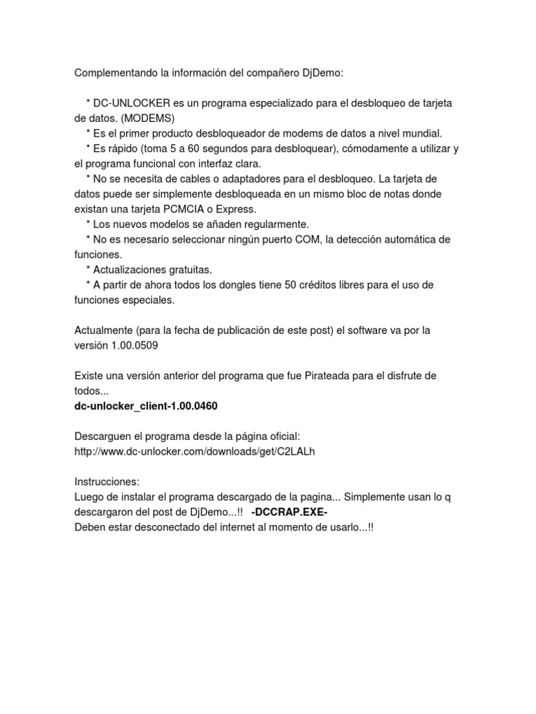 Download Dc Unlocker Dccrap / Zte mf637 3g modem dongle can be unlocked with two ways, one is dc unlocker cracked version also know …. Here are dc unlocker available to download : There are a lot of version for dc unlocker. Unlock ur modem and turn it into a universal internet hotspot dc unlocker unlocks most model of … Jun 18, 2012 · it is easy to use with user friendly interface. Mar 20, 2017 · download dc crap.
